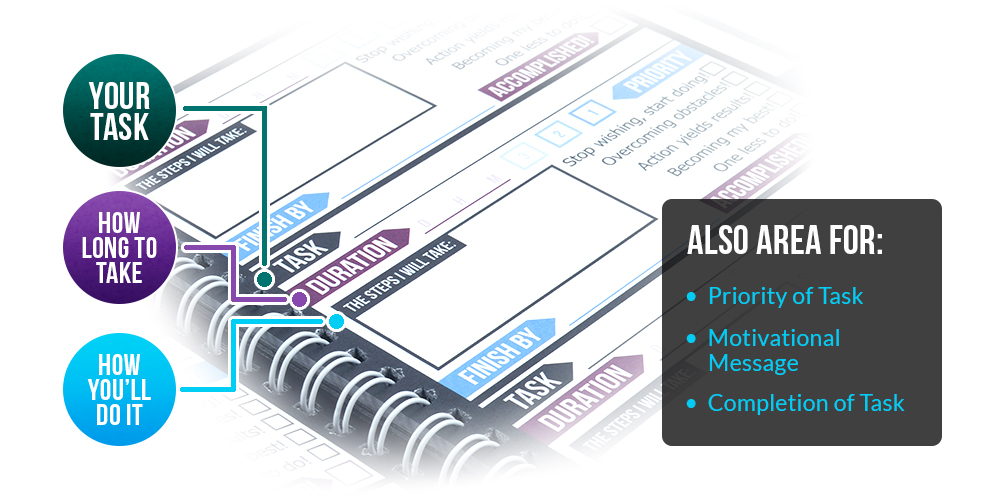 Write down all of your objectives and keep track of your priorities using the Task Tackler system. If you need it done today or tomorrow, that's a Priority #1! If you need it done in a week or two, put it at a #2, and for tasks that can be done within the month or year, make it a Priority #3!